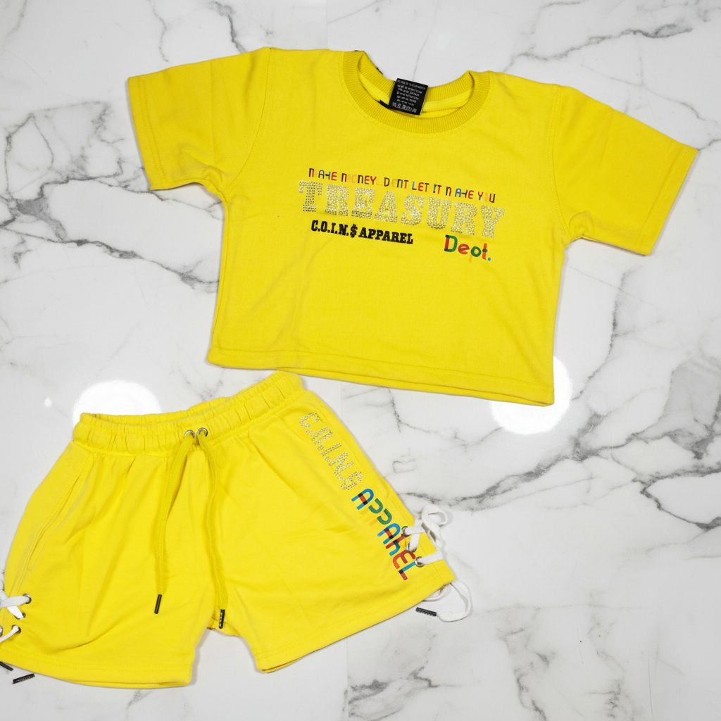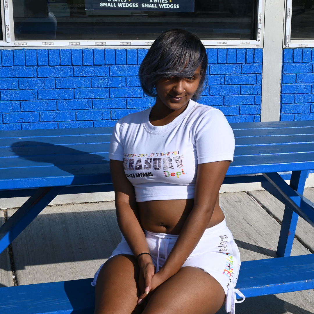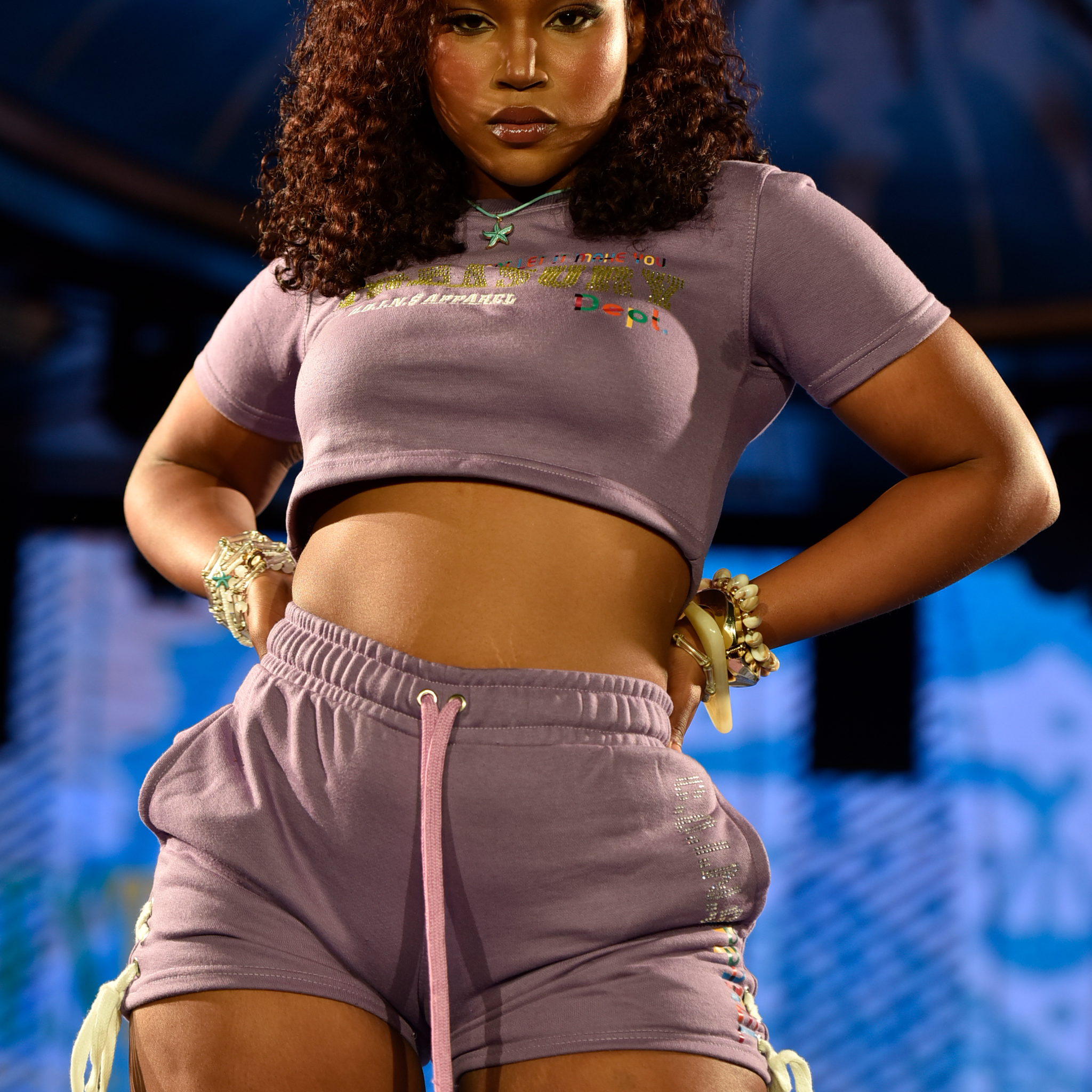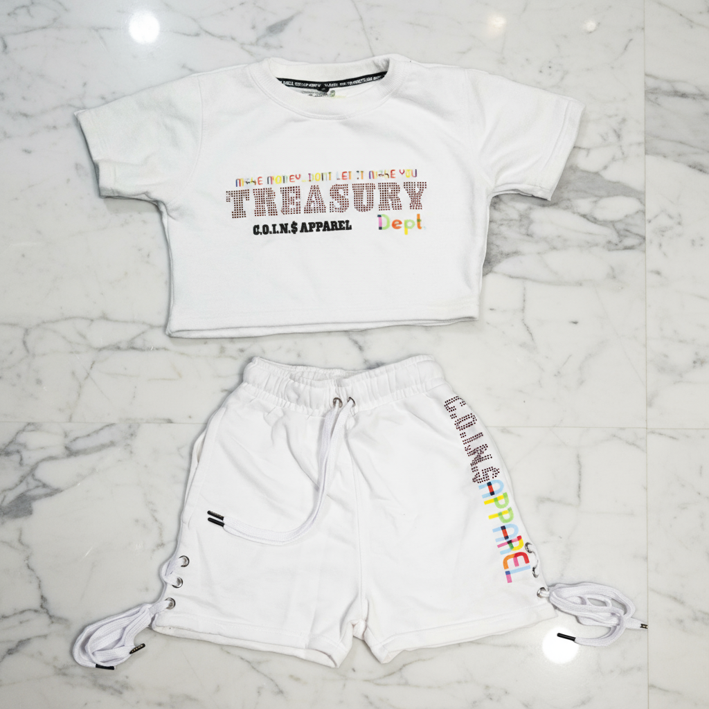 Experience comfort and style with the Treasury Dept. Terry Cotton Shorts. Made from 100% terry cotton, these shorts offer a soft, breathable feel perfect for everyday wear. Featuring convenient pockets and stylish laced sides, they combine practicality with a unique look. The eye-catching rhinestone design adds a touch of sparkle, making these shorts a standout addition to your wardrobe. Elevate your casual outfits with these versatile and comfortable shorts.